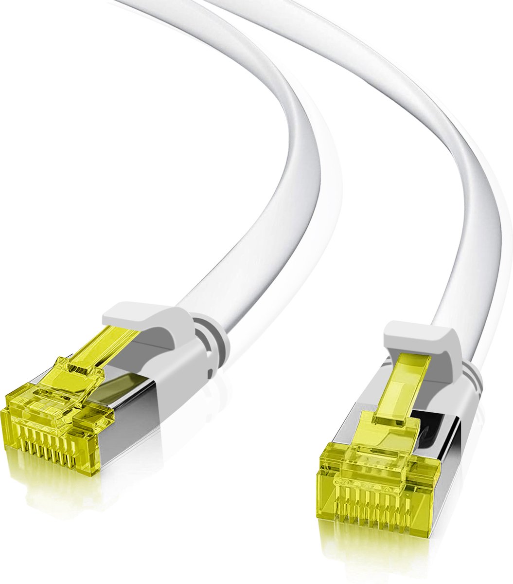 Helos 205257. Snoerlengte: 2 m, Kabel standaard: Cat6a, Kabelafscherming: U/FTP (STP), Aansluiting 1: RJ-45, Aansluiting 2: RJ-45, Contact geleider materiaal: Goud, Overdrachtssnelheid: 10000 Mbit/s, Kleur van het product: Wit, Geel