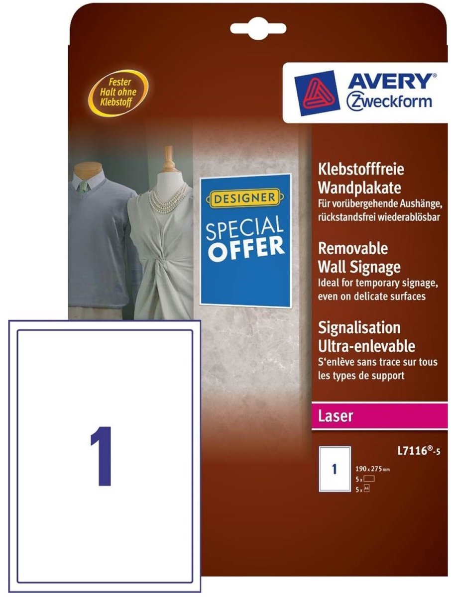 Maak uw klanten attent op speciale aanbiedingen met de zelfklevende wandposters van Avery Zweckform!