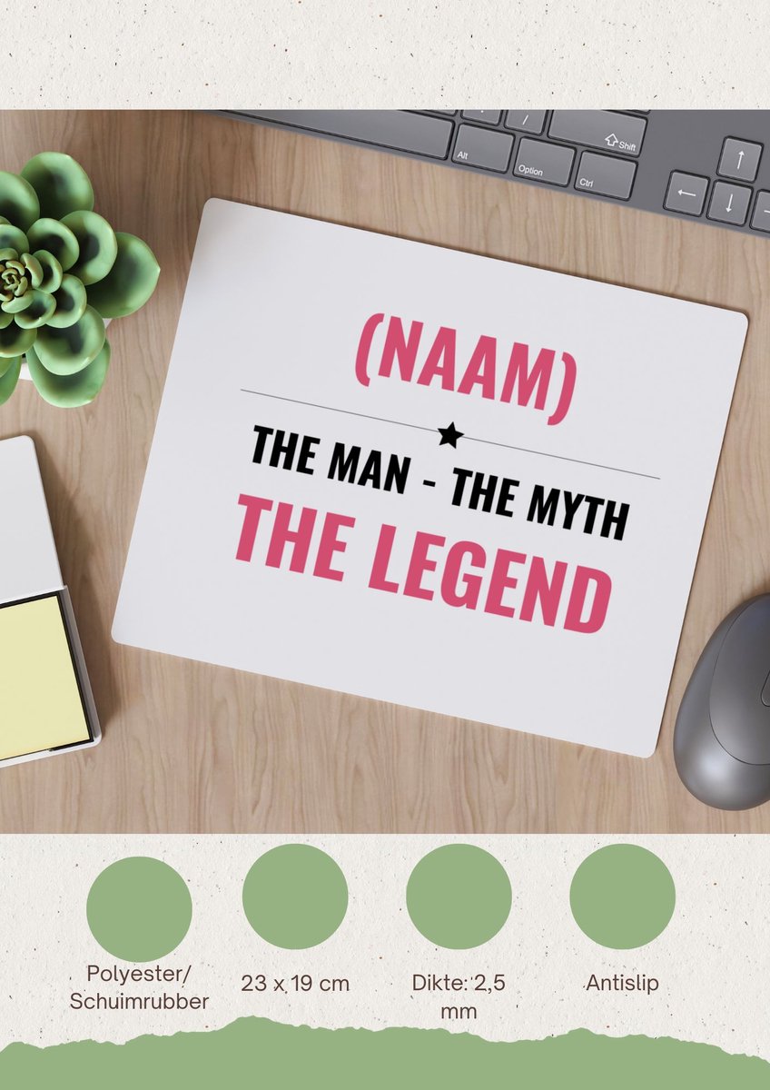 Deze the man the myth the legend met je eigen naam muismat is speciaal ontworpen voor iemand die een legend is en heeft het thema legendary. De muismat heeft een formaat van 23 bij 19 CM en gemaakt van polyester schuimrubber. Laat je inspireren door de verschillende soorten stijlen op de muismatten!