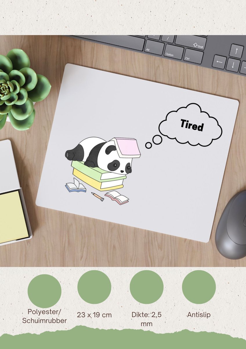 Deze tired panda muismat is speciaal ontworpen voor panda liefhebbers en heeft het thema panda. De muismat heeft een formaat van 23 bij 19 CM en gemaakt van polyester schuimrubber. Laat je inspireren door de verschillende soorten stijlen op de muismatten!