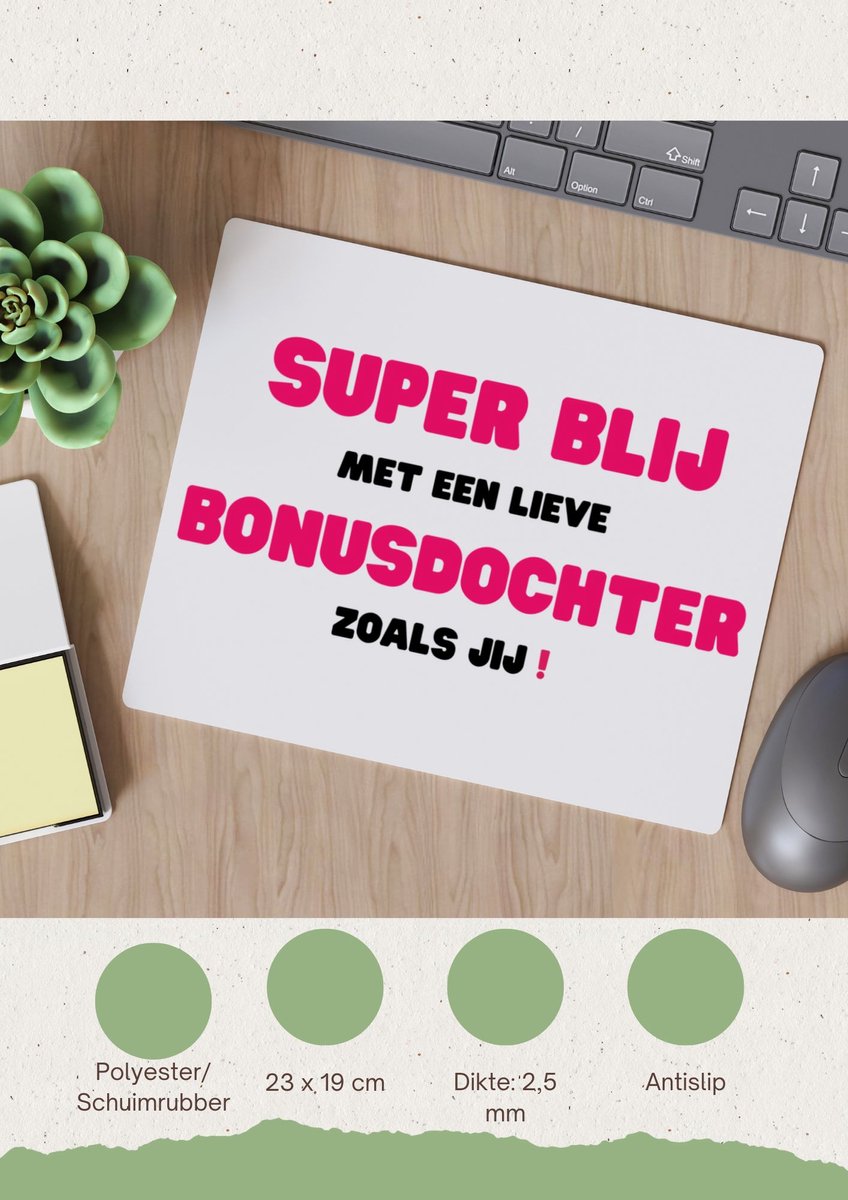 Deze super blij met een lieve bonusdochter zoals jij muismat is speciaal ontworpen voor de liefste bonusdochter en heeft het thema dochter. De muismat heeft een formaat van 23 bij 19 CM en gemaakt van polyester schuimrubber. Laat je inspireren door de verschillende soorten stijlen op de muismatten!