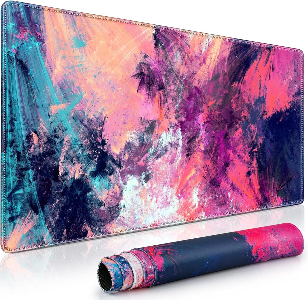 Deze extra grote muismat van 900 x 400 mm biedt enorm veel ruimte voor het plaatsen van laptops, muizen, toetsenborden en andere items. Het zorgt voor perfecte mobiliteit en houdt uw bureau netjes en georganiseerd. Deze muismat kan ook dienen als bureau- of schrijfmat. Dankzij het gladde, comfortabele en ademende Lycra-oppervlak is snelle en nauwkeurige muiscontrole mogelijk, wat veiligheid en controle biedt tijdens het gamen. Deze muismat is ideaal voor enthousiaste gamers die waarde hechten aan snelheid, precisie en comfort. De rand van deze XXL muismat is voorzien van een tweelaagse stiktechniek, wat ervoor zorgt dat de mat niet rafelt, vervormt of uit elkaar valt zoals andere bureaumatten. Dit garandeert een langere levensduur van het product. De onderkant van de muismat is gemaakt van antislip natuurlijk rubber, wat zorgt voor optimale grip en voorkomt dat de mat verschuift. Mocht de muismat in contact komen met water, drankjes, inkt of andere vloeistoffen, dan is deze eenvoudig schoon te maken met een vochtige doek of papier. U kunt de muismat reinigen met warm water of in de wasmachine. Met een gepersonaliseerd ontwerp biedt deze muismat een uitstekende uitstraling. Het is een perfect geschenk voor vrienden, familie, klasgenoten en collega's. We bieden vriendelijke klantenservice en als u niet tevreden bent met onze XXL gaming muismat, kunnen we een nieuwe leveren of een volledige terugbetaling bieden.