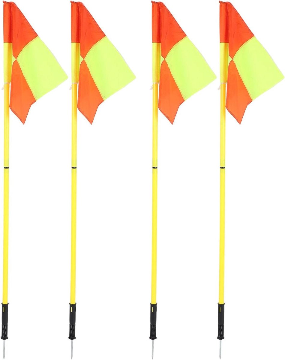 Met deze set van 4 voetbalhoekvlaggen blijf je altijd in het spel en verbeter je de duidelijkheid op het voetbalveld. De vlaggen zijn ongeveer 150 cm hoog en opvallend geel en rood van kleur, waardoor ze goed zichtbaar zijn tijdens intense wedstrijden en bij verschillende weersomstandigheden.