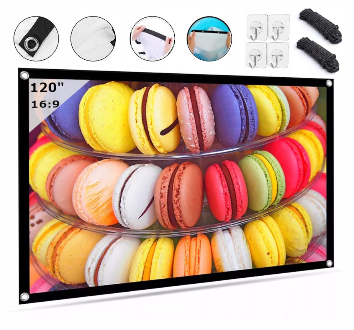 Groot scherm (120” - 266x149 cm) – Ideaal voor thuisbioscopen, kantoren en buitengebruik.