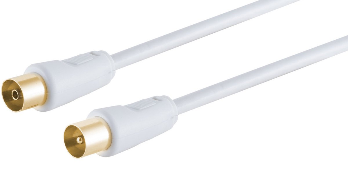 Antennenkabel, 100% geschirmt, vergoldete Kontakte, > 100 dB, weiß, 7,5m #Z#Z· Anschlüsse: IEC (Koax) Stecker - IEC (Koax) Kupplung#Z· Stecker: vergossen#Z· Aufbau Schirmung: 1x0,5mm, 128x0,12mm ALU + Alu-Folie#Z· Adern Material: Kupfergemisch#Z· Stecker Material: Eisen#Z· Kontaktoberfläche: vergoldet#Z· Schirmmaß: > 100dB#Z· Farbe Stecker: weiss#Z· Farbe Kabel: weiss