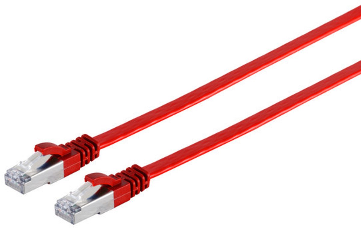 Netzwerkkabel-RJ45 Patchkabel-Flachkabel, Flat U/FTP m. CAT 7 Rohkabel, slim, rot, 7,5m #Z#Z· Anschlüsse: Cat. 6A (tiefgestellt), (500Mhz) RJ45 Stecker - RJ45 Stecker #Z· konfektioniertes Rohkabel Cat 7, 600 MHz#Z. Stecker RJ45, Goldauflage 50 mµ#Z. Kabel: 7x0,10mm CU , OD = 1,8 mm x 6,6 mm, #Z. Material Kabel: PVC#Z. Kabelschirmung: U/FTP#Z. Belegung: nach TIA/EIA 568 B, 1:1#Z. Robustheit: angespritzter RJ45 Stecker