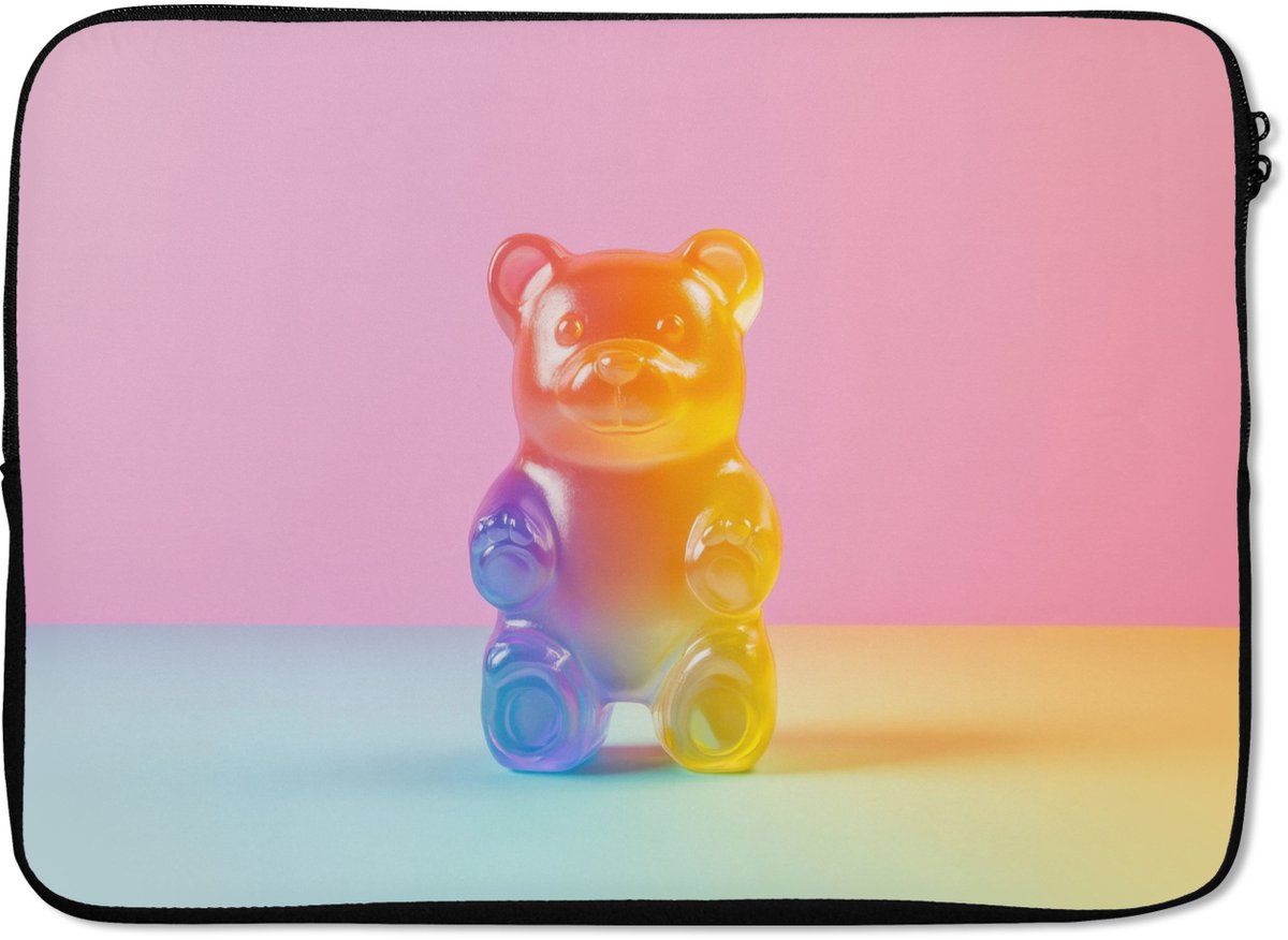 Laptophoes 14 inch - Pastel - Snoep - Laptop sleeve - Binnenmaat 33x23 cm - Zwarte achterkant