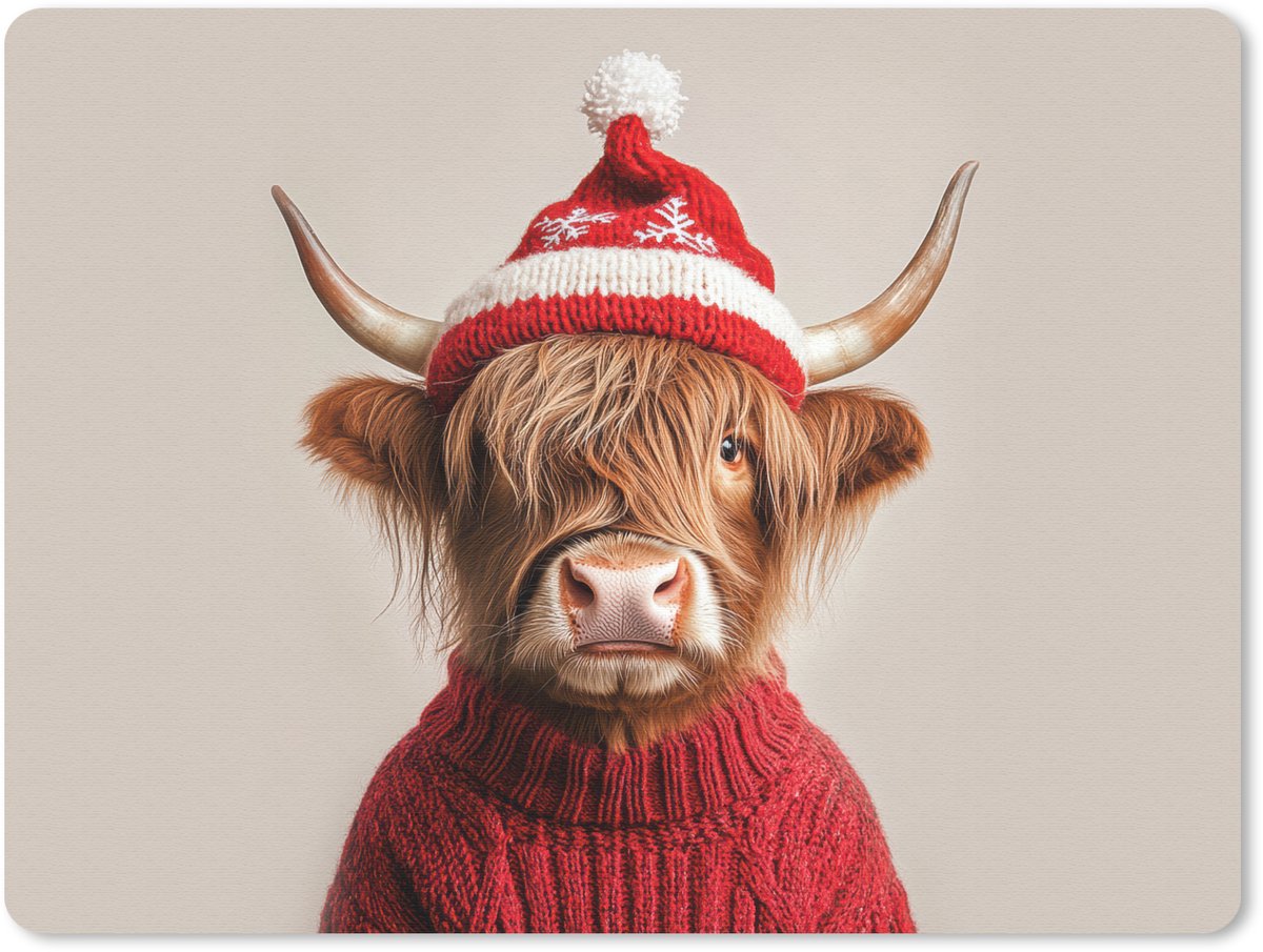 Muis mat - Schotse Hooglander - Kerst - Muts - Trui - Winter - Mouse pad