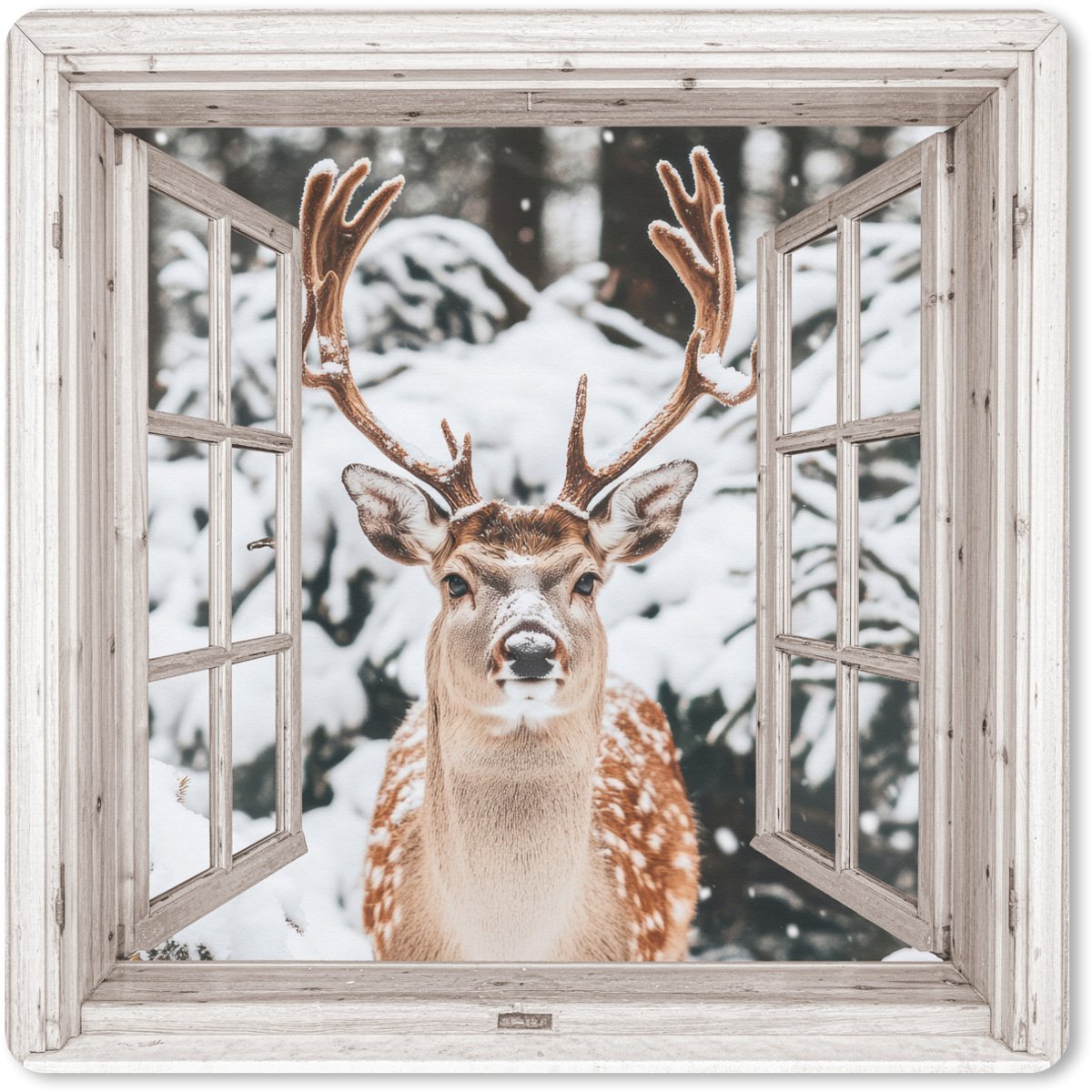 Muismat XXL 60x60 cm - Bureau onderlegger - Bureau mat Doorkijk - Hert - Sneeuw - Winter - Bos - Dieren - Natuur - Bureaumat - Gaming mousepad xl - Bureaulegger groot - Computer deskmat