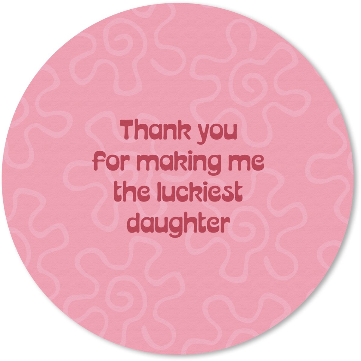 Roze achtergrond met krullerige lijnen en dikke rode tekst in het midden. De woorden bedanken een moeder op een vrolijke en zachte manier, als een lieve boodschap voor moederdag..