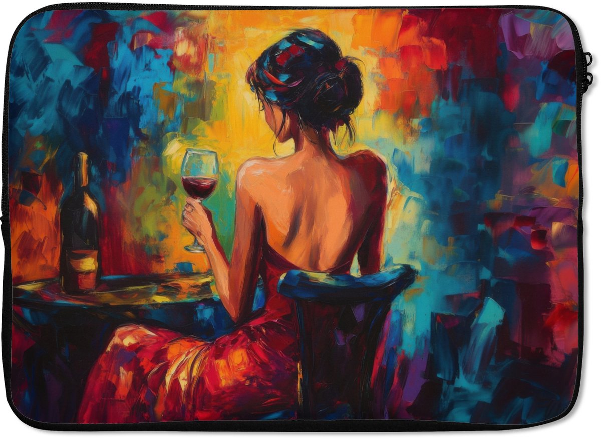 Laptophoes - Wijn - Vrouw - Sfeervol - Kleurrijk - Laptopsleeve