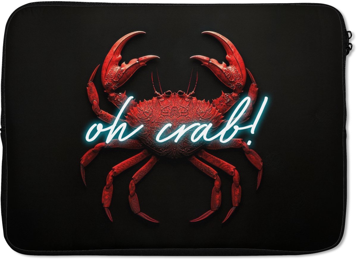 Laptophoes 14 inch - Krab - Rood - Neon - Quote - Laptop sleeve - Binnenmaat 33x23 cm - Zwarte achterkant