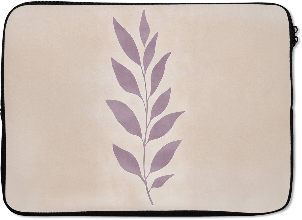 Laptophoes 14 inch - Tak - Bladeren - Minimalistisch - Beige - Laptop sleeve - Binnenmaat 33x23 cm - Zwarte achterkant