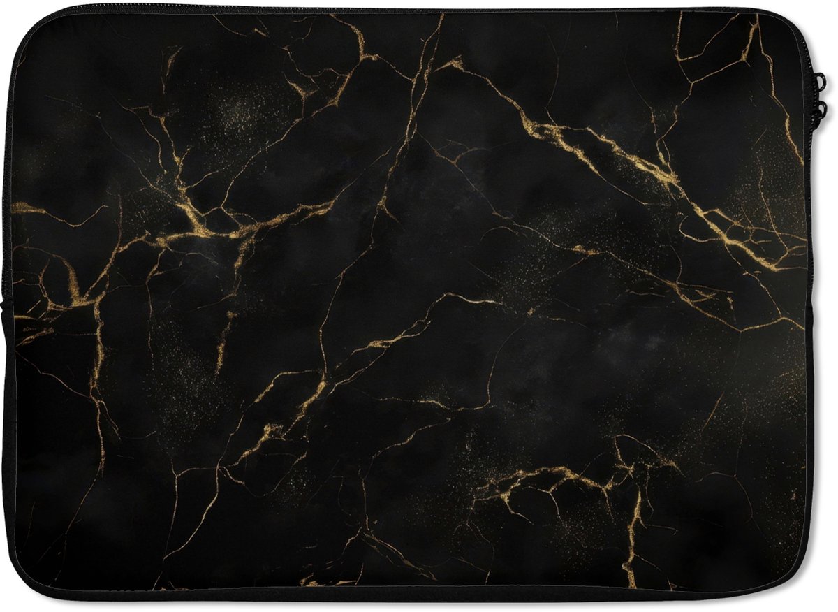 Laptophoes - Zwart marmer - Gouden aders - Klassiek - Laptopsleeve