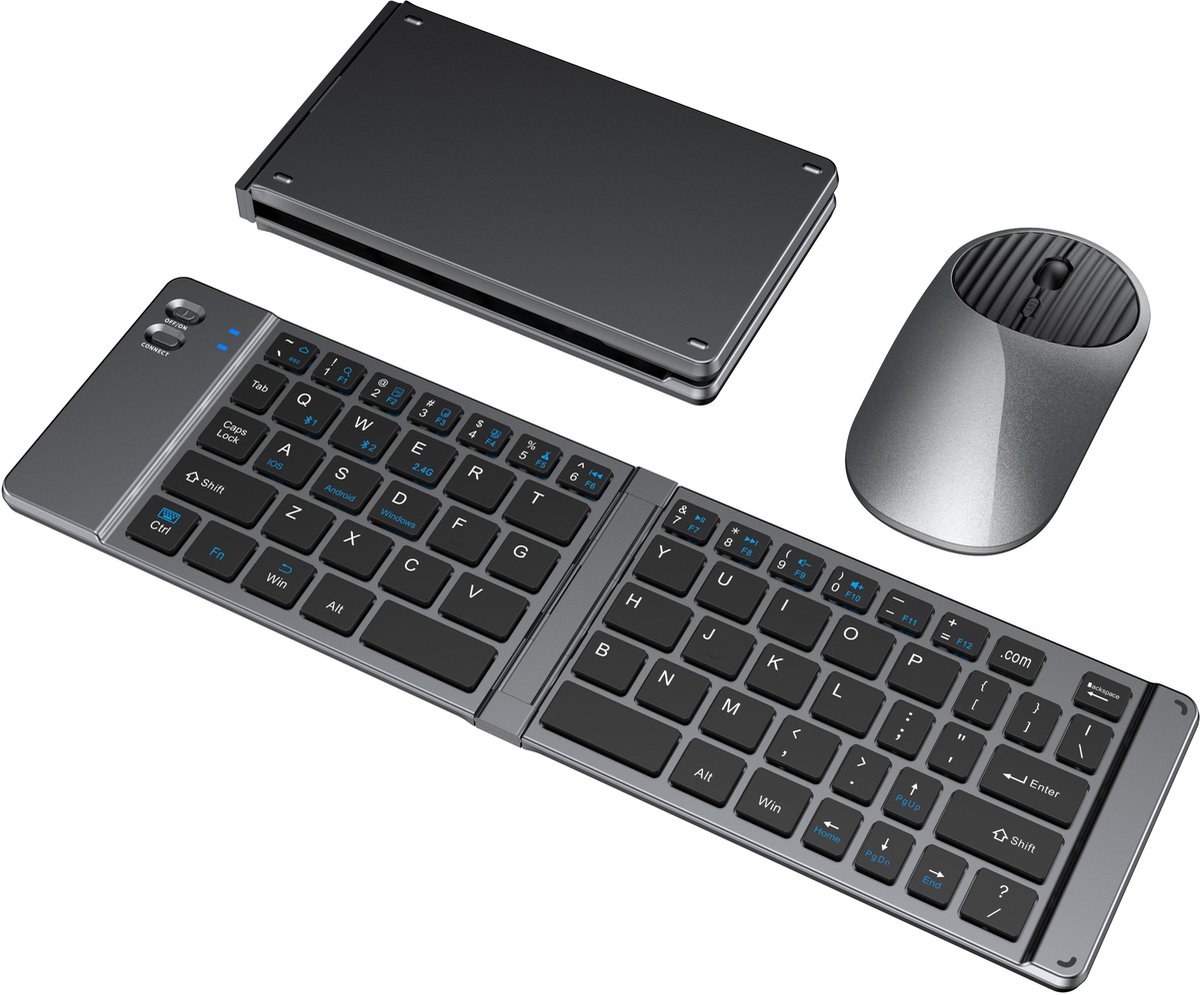 Werk waar en wanneer je maar wilt met deze stijlvolle en superdraagbare toetsenbord- en muisset. Dankzij het opvouwbare ontwerp neem je hem moeiteloos mee in je tas of rugzak. De set is draadloos, oplaadbaar en ondersteunt drie verbindingsmodi (Bluetooth 1, Bluetooth 2 en 2.4G USB), zodat je eenvoudig kunt schakelen tussen je laptop, tablet en smartphone. De stille toetsen zorgen voor comfortabel typen zonder storend geluid – ideaal voor onderweg, op kantoor of thuis.