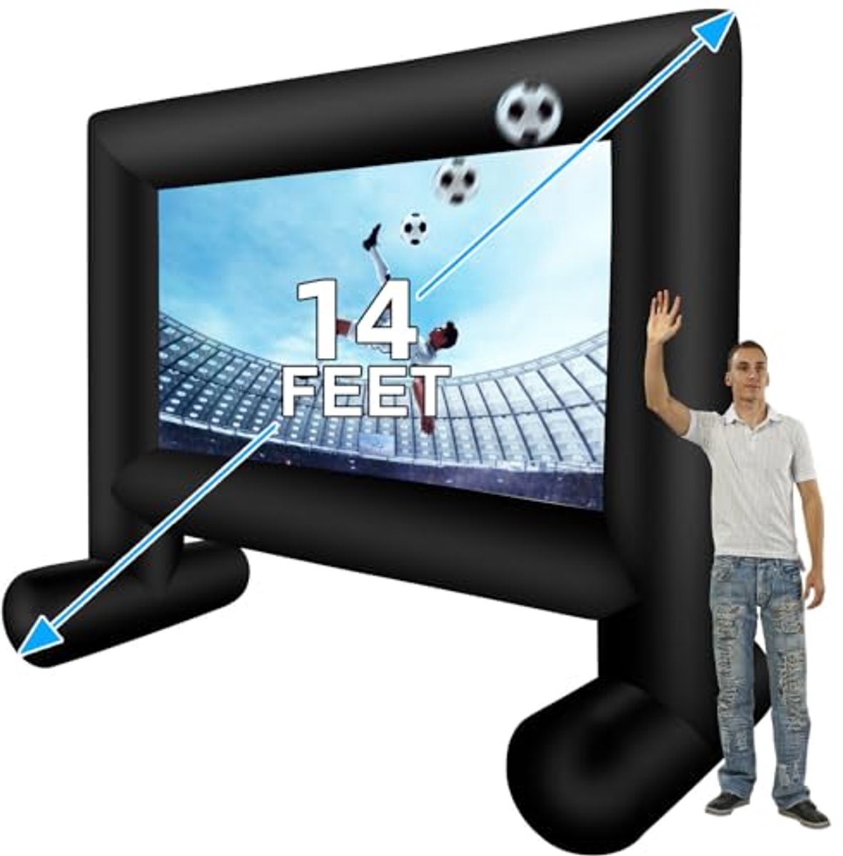Geniet van een fantastische filmervaring met dit 14 FT opblaasbare projector filmscherm, perfect voor buitengebruik. Ideaal voor filmavonden in de achtertuin, feesten, bruiloften, en meer. Dit hoogwaardige scherm is ontworpen voor een maximale beeldkwaliteit, en wordt geleverd met een stille luchtventilator, opbergtas, nylon banden en basisstaken voor stevige bevestiging. Met strenge kwaliteitscontroles en een klantgerichte benadering, bieden wij een 30 dagen geld terug garantie en 90 dagen garantie. Perfect voor kamperen, picknicks, en openbare weergaven. Maak uw buitenactiviteiten onvergetelijk!