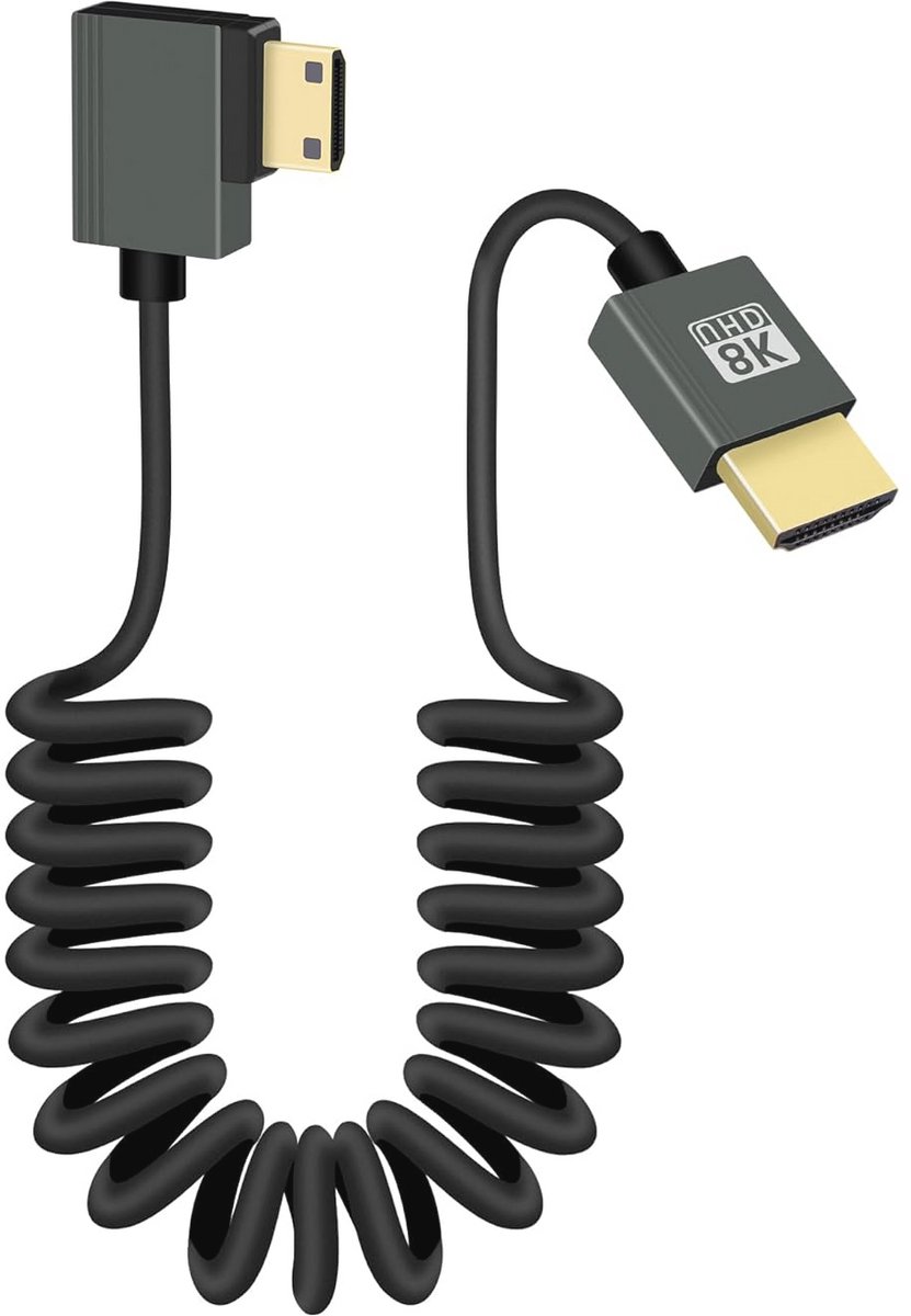 Ontdek de 8K mini HDMI naar HDMI spiraalkabel van 1 meter. Deze hoogwaardige spiraalkabel ondersteunt een indrukwekkende bandbreedte van 48 Gbps (2560 Mb/s) en is ideaal voor HD-projecties met 8K @60Hz en 4K @120Hz. Perfect voor het aansluiten van camera's, beeldschermen, en gaming-apparatuur. Het compacte ontwerp maakt het eenvoudig te vervoeren en te gebruiken, terwijl de kabel zich uitstrekt van 0,3 m tot 0,7 m om aan verschillende behoeften te voldoen. Gemaakt van hoogwaardig materiaal met een aluminiumlegering schaal en vergulde interface voor een stabiele verbinding. Het PVC-materiaal biedt hoge temperatuurbestendigheid en sterke taaiheid. Inhoud verpakking: 1 mini HDMI naar HDMI spiraalkabel.