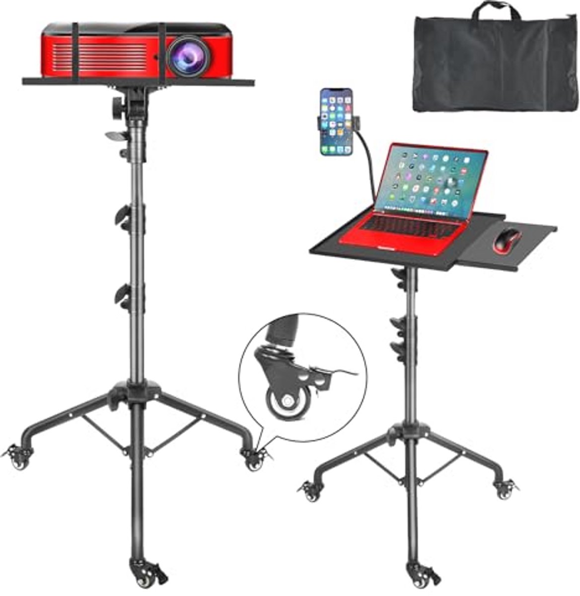 Dit verstelbare projectorstatief met een hoogte van 66-160 cm is perfect voor thuis, op kantoor of op het podium. Het statief is multifunctioneel en ondersteunt projectoren, laptops, recorders en meer. Met een praktisch muislade en telefoonhouder werk je eenvoudig en efficiënt. De stille zwenkwielen maken het verplaatsen van het statief eenvoudig, terwijl de afneembare wielen kunnen worden verwijderd indien nodig. De sponspakking en elastische band zorgen ervoor dat je apparatuur veilig en op zijn plaats blijft. Dit draagbare en opvouwbare ontwerp is geschikt voor verschillende gelegenheden, of je nu binnen of buiten bent. In de verpakking vind je alles wat je nodig hebt: het statief, stalen buizen, muislade, telefoonhouder, elastische riemen en een handleiding. Geniet van een comfortabele en flexibele werkervaring met dit verstelbare projectorstatief.
