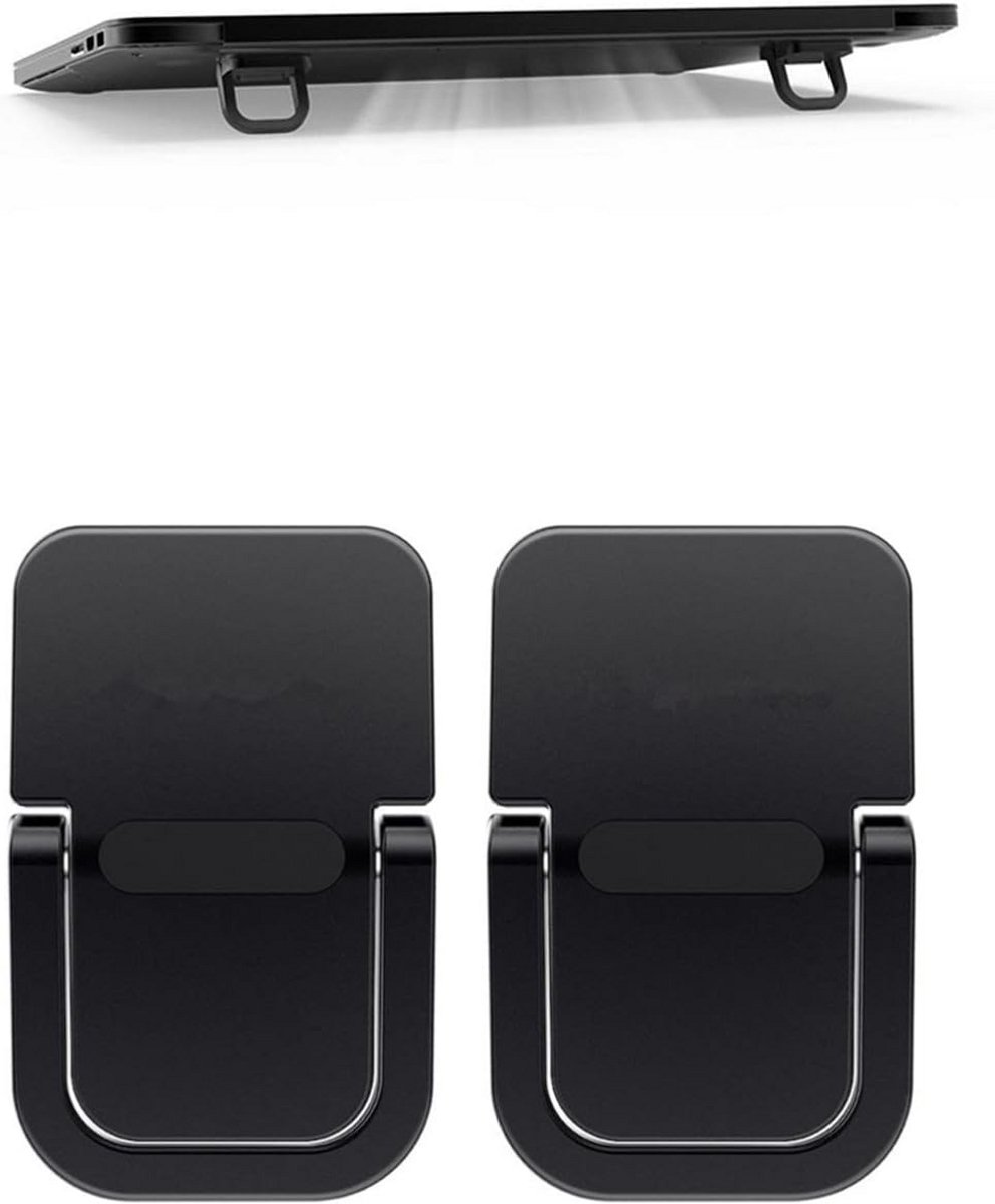 Set van twee draagbare en universele mini laptop standaards, ideaal als laptophouder voor bureaus of als verhoging voor uw computertoetsenbord. Geschikt voor laptops van 10 tot 18 inch. Gemaakt van duurzame zinklegering in de kleur zwart. Compact formaat: 39x29x6mm. Deze stijgbuis zorgt voor een betere ergonomische houding voor uw laptop of tablet.