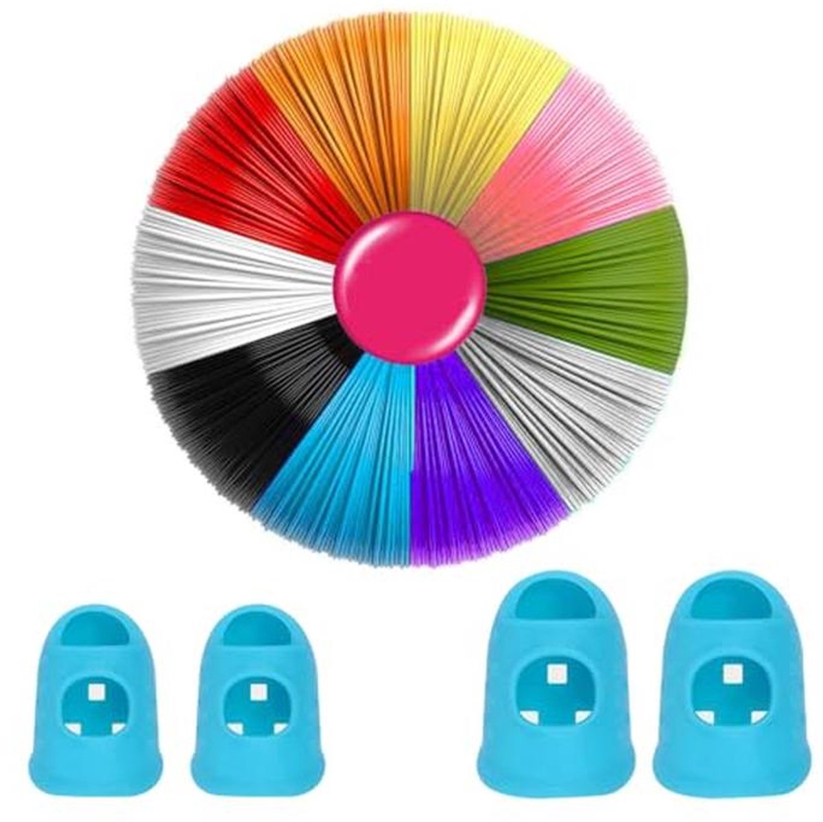 Ontdek ons patronenpakket met 10 verschillende kleuren PLA 3D-print filament van 1,75 mm. Deze hoogwaardige filamenten zijn perfect voor zowel 3D-pennen als 3D-printers en zijn ontworpen om te inspireren en je creativiteit in 3D-ontwerpen en -tekeningen tot leven te brengen. Met een printtemperatuur tussen 180-220 °C ondersteunen ze een breed scala aan toepassingen. Bij aankoop ontvang je ook 4 siliconen vingerbeschermkappen als extraatje, ideaal om je vingers te beschermen tijdens het tekenen en printen. Geschikt voor alle apparaten die 1,75 mm PLA-filament vereisen.