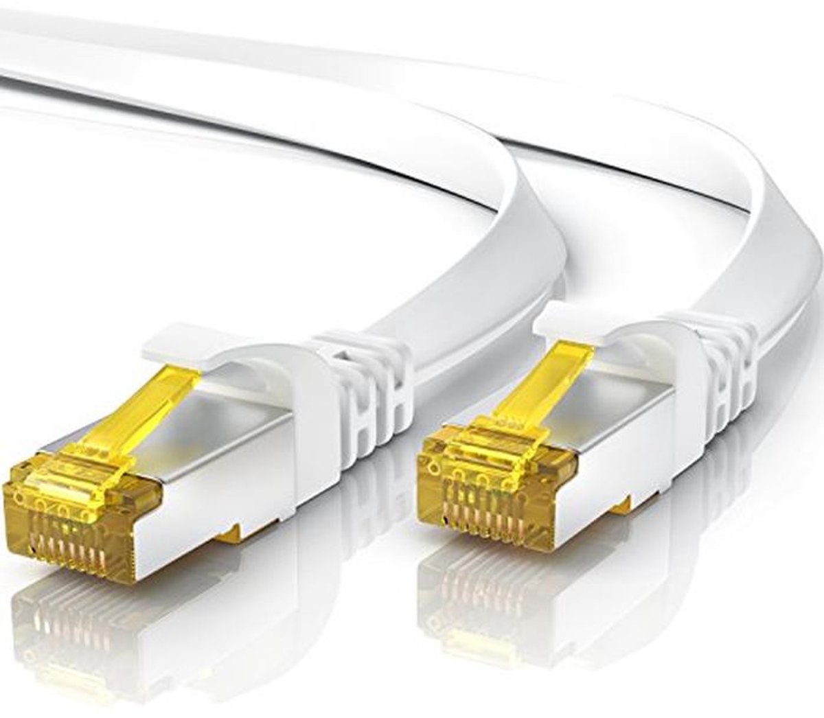 Deze CAT7 platte netwerkkabel biedt een betrouwbare en snelle dataverbinding tot 10.000 Mbits (10 Gbps) met een hoge frequentie tot 600 MHz, wat zorgt voor een uitstekende bandbreedte. De platte kabel is ideaal voor installatie onder tapijt, laminaat of tussen plinten, waardoor je het gemakkelijk kunt wegwerken in krappe ruimtes. De U/FTP afscherming minimaliseert storingen en maximaliseert de prestaties, waardoor deze kabel perfect is voor zowel thuisgebruik als zakelijke omgevingen. Dankzij de robuuste CAT6a RJ45 connectoren ben je verzekerd van een duurzame verbinding. Geschikt voor alle 10/100/1000/10.000 MBit Ethernet netwerken.
