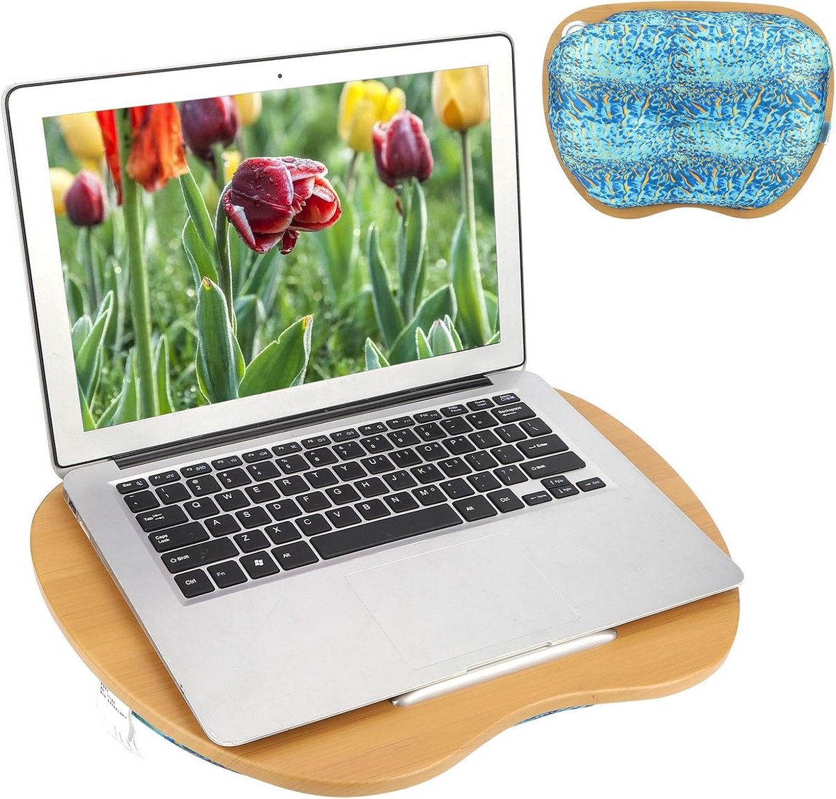 Ergonomisch ontworpen laptop bureaublad voor thuis, kantoor en studentenleven. Deze draagbare lapdesk biedt comfort dankzij het vormgegeven memory foam kussen en heeft een antislipmatje voor optimale grip. Geschikt voor laptops tot 15,6 inch, tablets en boeken. De lichte constructie en handige maten (ca. 40 x 28,5 x 9 cm) maken hem ideaal voor gebruik op schoot. Ideaal voor wie comfortabel en mobiel wil werken of lezen.