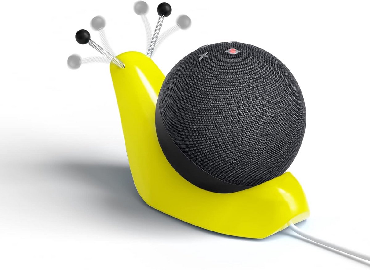 Leuke en stabiele standaard in slakvorm, speciaal ontworpen voor de 4e generatie slimme bolvormige speakers. Deze houder zorgt voor een stevige plaatsing zonder wiebelen dankzij de antislipmatten aan de onderkant. Integreer lelijke oplaadkabels netjes met de ingebouwde kabelmanagementfunctie, wat zorgt voor een opgeruimd bureau of tafel. De standaard is ontworpen om 360 graden geluid rondom uw speaker te optimaliseren voor een betere luisterervaring. Perfect als decoratief accessoire voor de keuken, nachtkastje of woonkamer. Eenvoudig zonder gereedschap te installeren. Compatibel met de Echo Dot 4e generatie (met en zonder klok) en de Kids-editie. Let op: niet geschikt voor de gewone Echo 4e generatie.