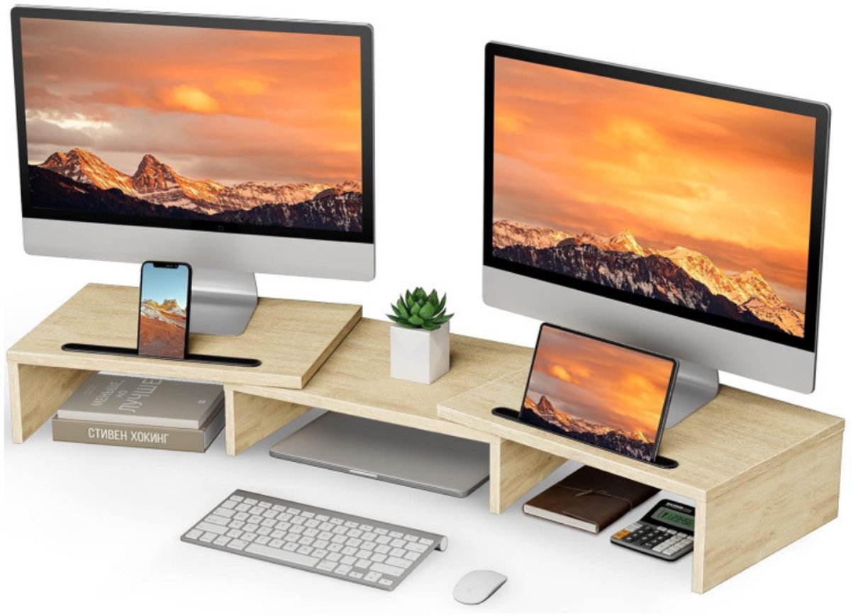 Werk comfortabeler en georganiseerder met de Livista monitorstandaard. Deze stevige standaard is gemaakt van 15 mm dik samengesteld plaatmateriaal en is ideaal voor het ondersteunen van één of twee monitoren, laptops, printers of speakers.
