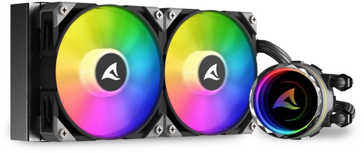 Upgrade uw PC met deze efficiënte 240mm All-In-One (AIO) waterkoeler. Ideaal voor het koelen van alle gangbare CPU's dankzij de koperen plaat voor superieure warmteoverdracht. Deze koeler beschikt over twee adresseerbare RGB-PWM ventilatoren (tot 2000 RPM) met een opvallende 'Infinity' spiegeleffect. De ventilatoren en pomp zijn PWM-gestuurd voor optimale prestaties en een laag geluidsniveau. Voor een eenvoudige installatie en net onderhoud zijn de ventilatoren voorzien van een Daisy Chain systeem. De flexibele, met textiel beklede slangen zorgen voor duurzaamheid en eenvoudige montage. Bovendien is het logo op de waterblok draaibaar, zodat u altijd een perfecte horizontale uitlijning in uw behuizing garandeert. Inclusief montagebeugels voor Intel en AMD sockets en hoogwaardige koelpasta.