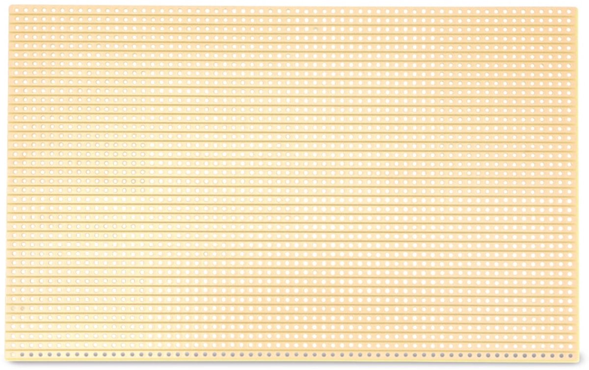 Materiaal: hardpapier, 1,5 mm dik, Cu-coating 35 µm, RM 2,54, 39 rijen. Afmetingen (LxB): 160x100 mm.